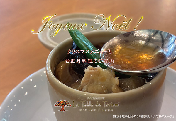 期間:12月20日(土)〜25日(木)6日間 お一人様 ¥23100(税込)〜 ちょっとリッチなクリスマスランチ 〜